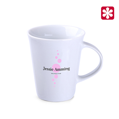 Bestsellerowy porcelanowy kubek z dużym ergonomicznym uchem. Jego proste ściany stanowią doskonałe tło dla zaprezentowania wartości marki.